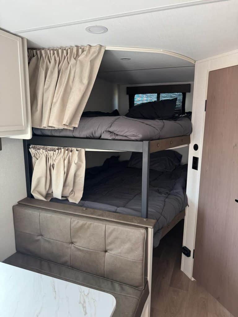 Enjoy a comfortable stay in our 2026 Grand Design camper, sleeping up to 8 guests. The camper includes all bedding and towels, a fully stocked kitchen, and access to the campground bathhouse—making it an easy, convenient option for your getaway.